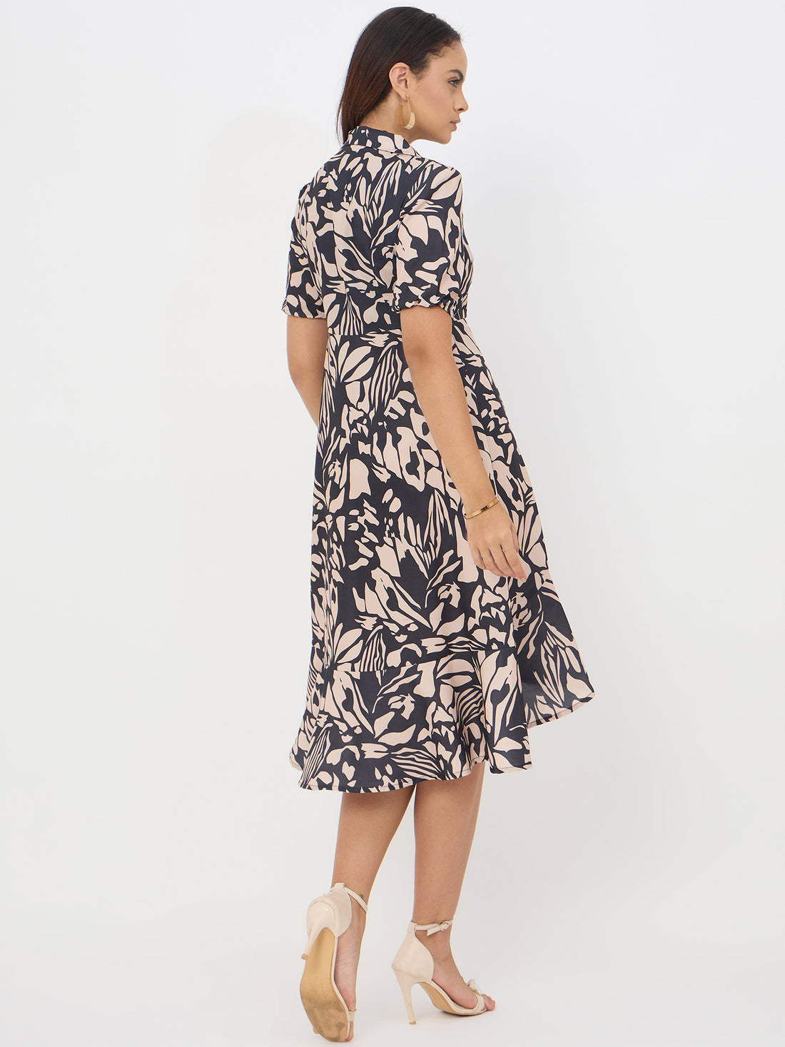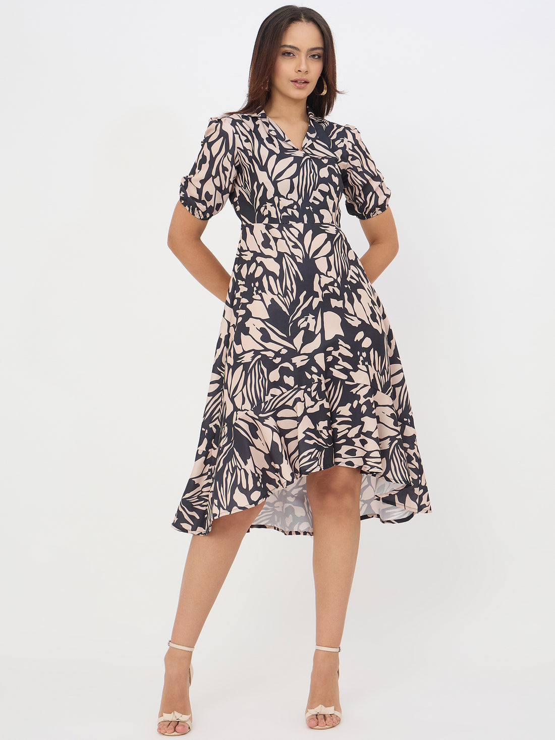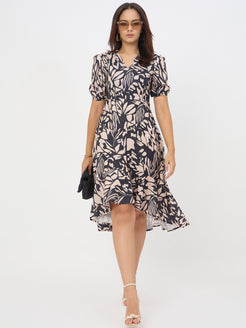 Abstract Printed Black Muslin Dress