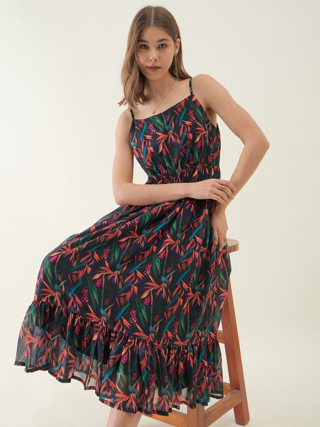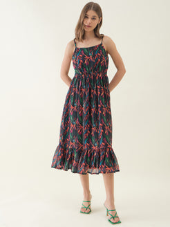 Black Floral Printed Sleeveless Maxi Dress