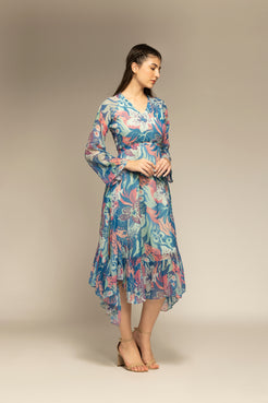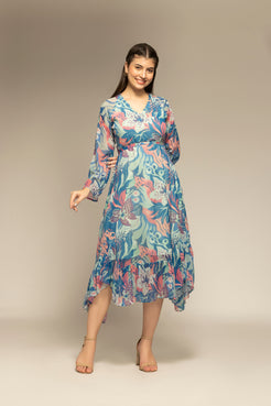 Blue Floral Printed Maxi Dress