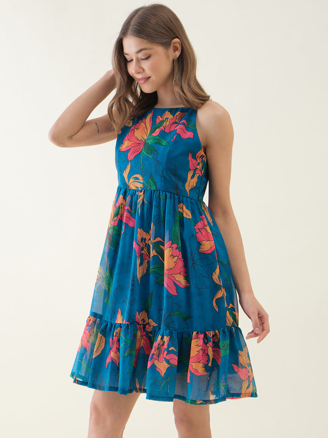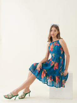 Blue Lotus Printed Seelveless Mini Dress