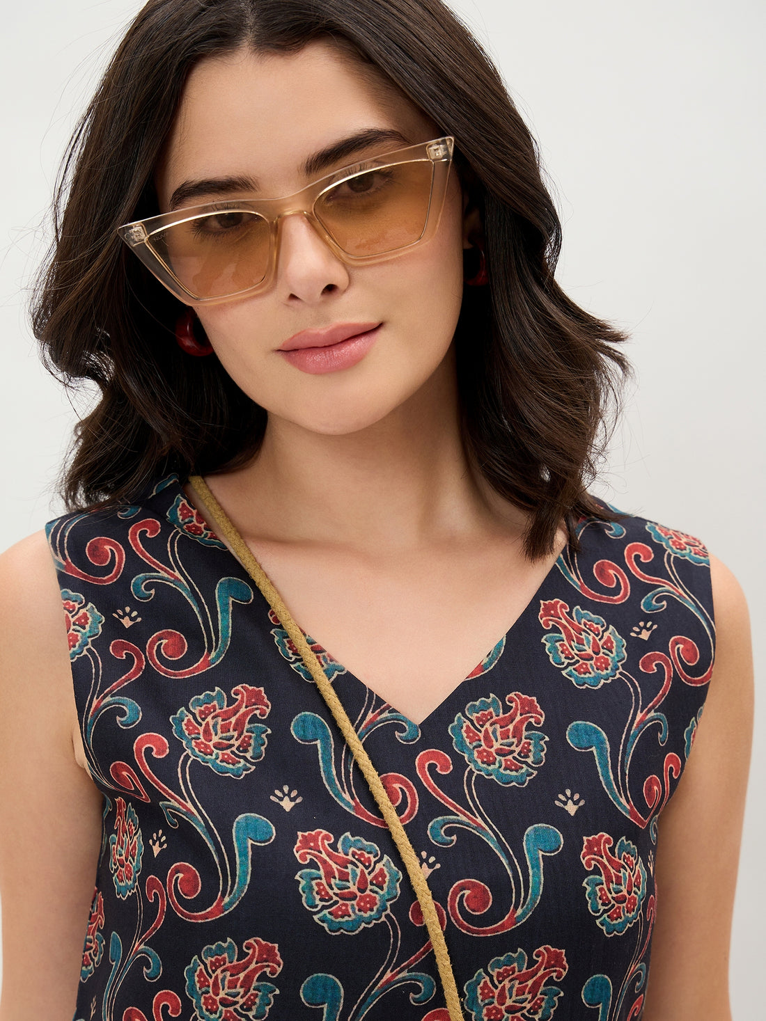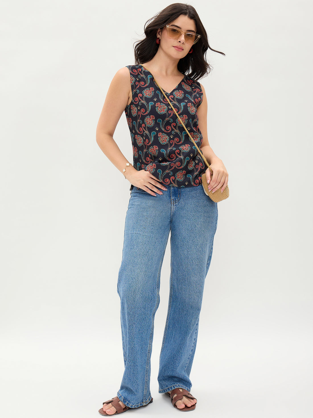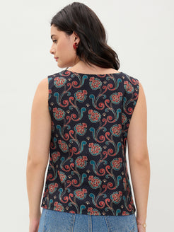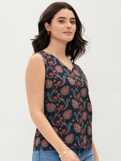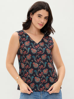 Blue Printed V Neck Top