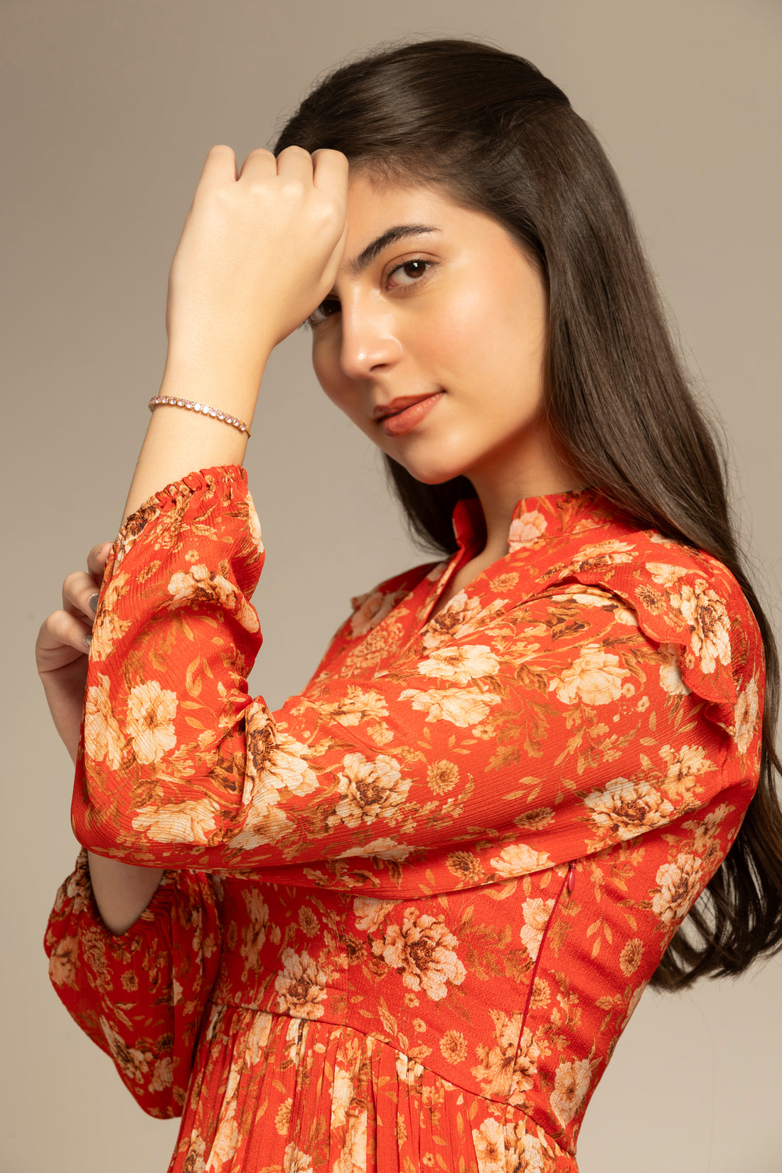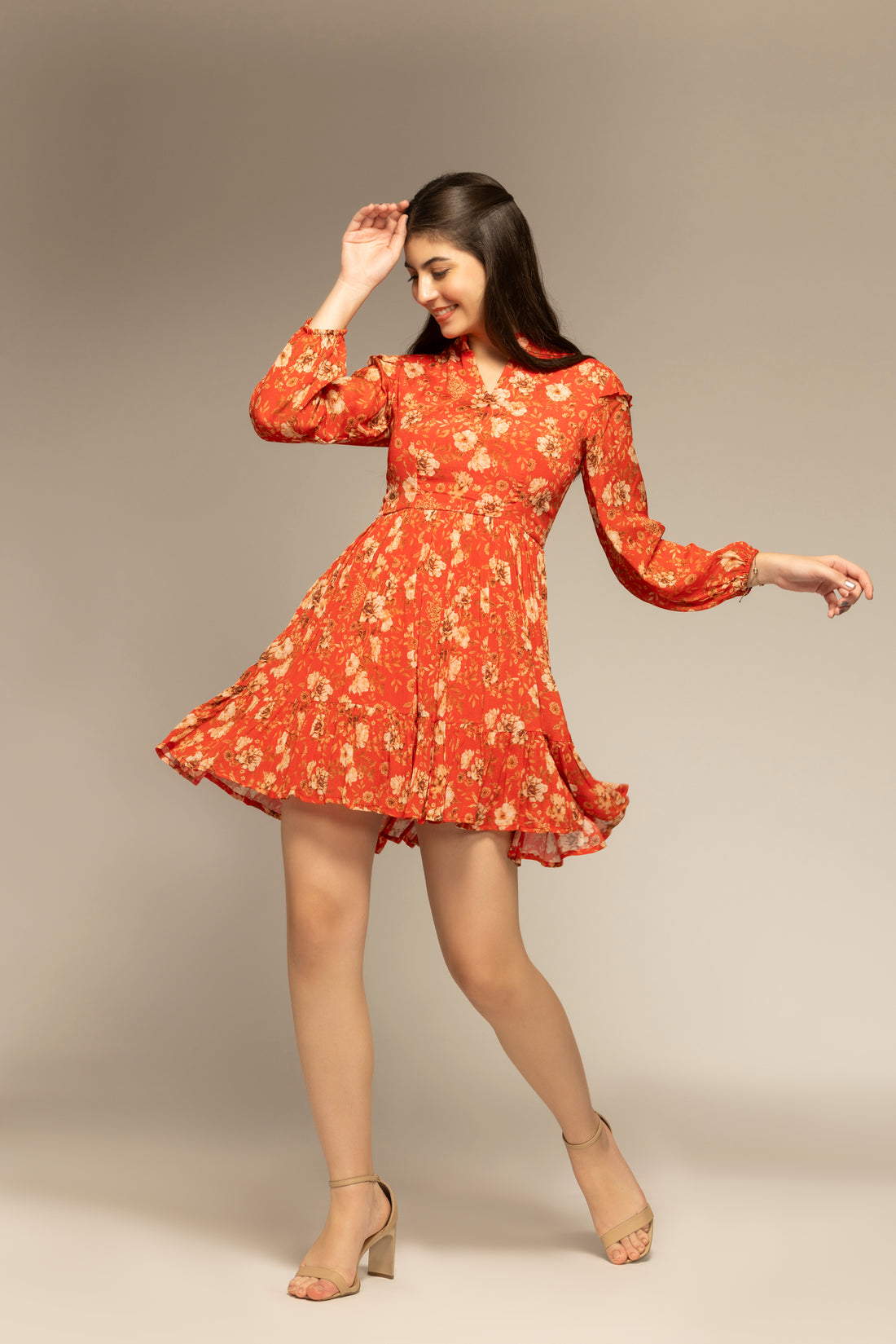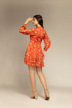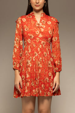 Floral Printed Flare Chinon Dress