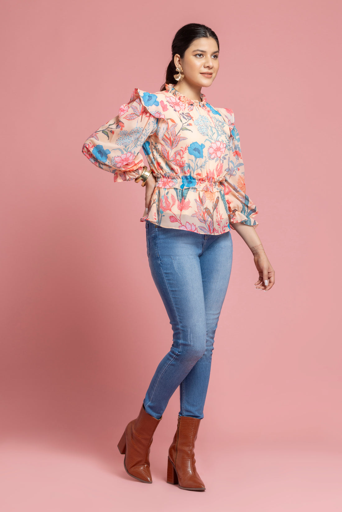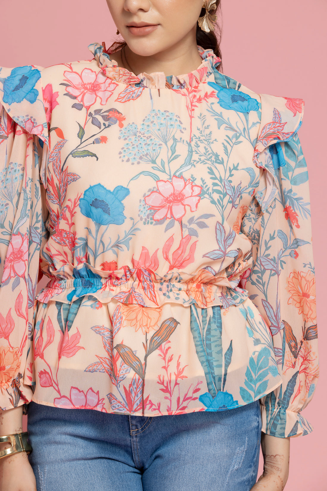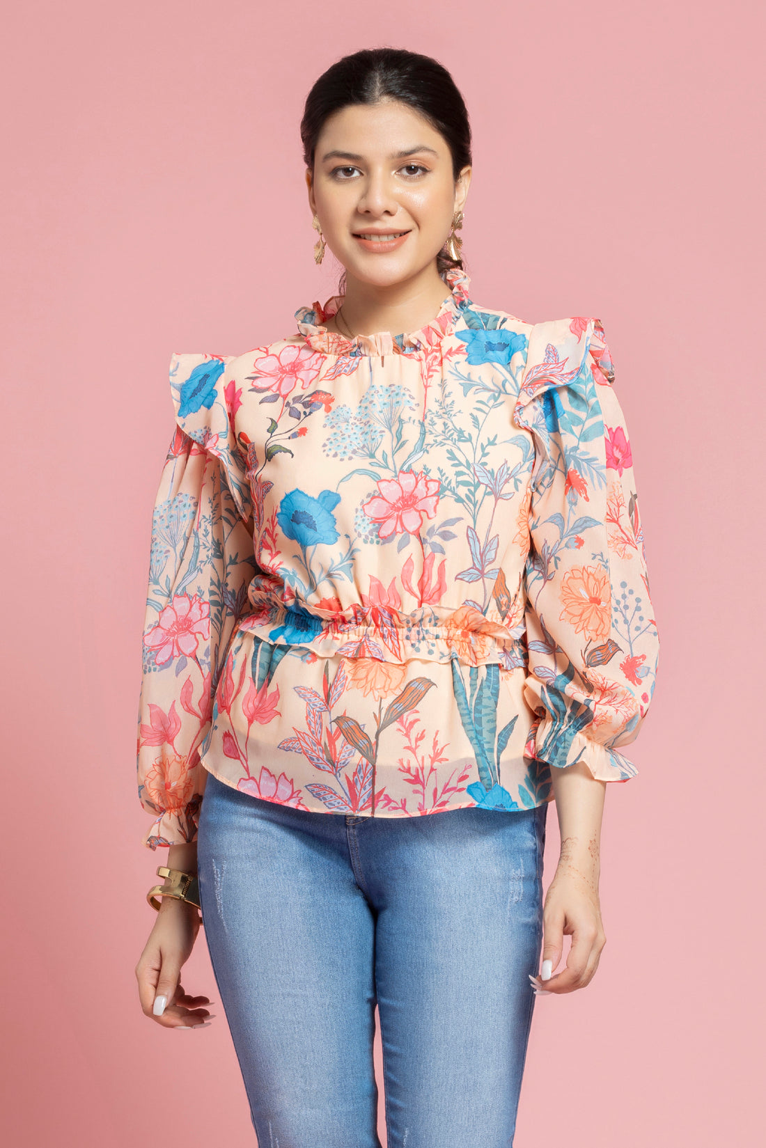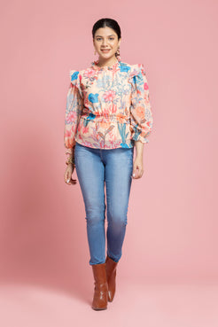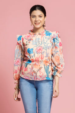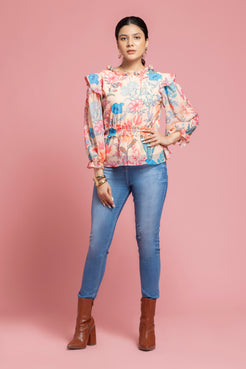 Floral Printed Peplum Style Georgette Top