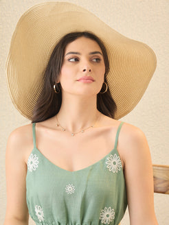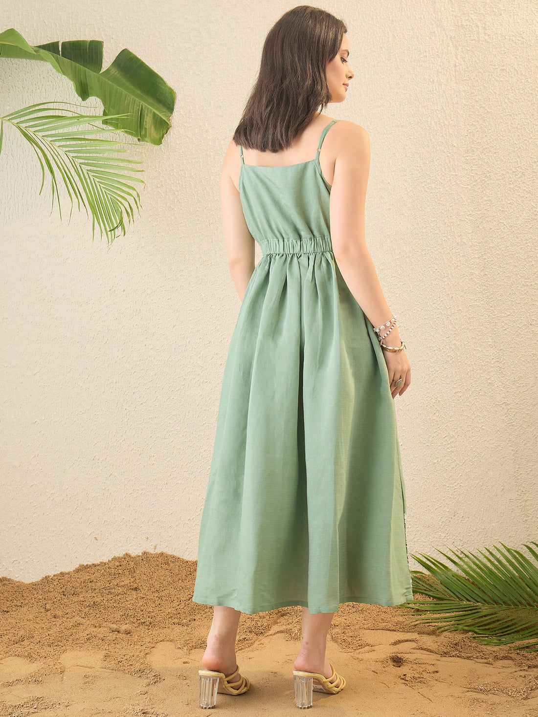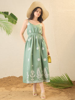 Green Floral Embroidered A-Line Midi Dress