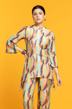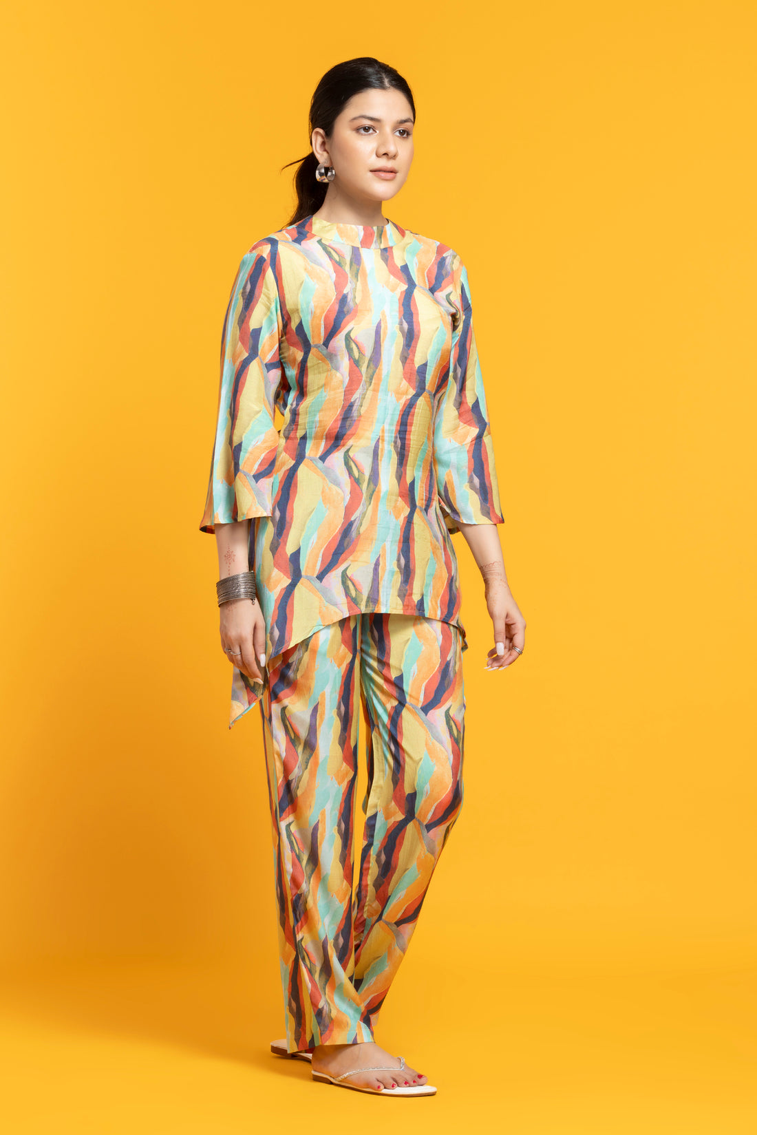 Multicolor Party Printed Muslin Silk Co-Oreds Set
