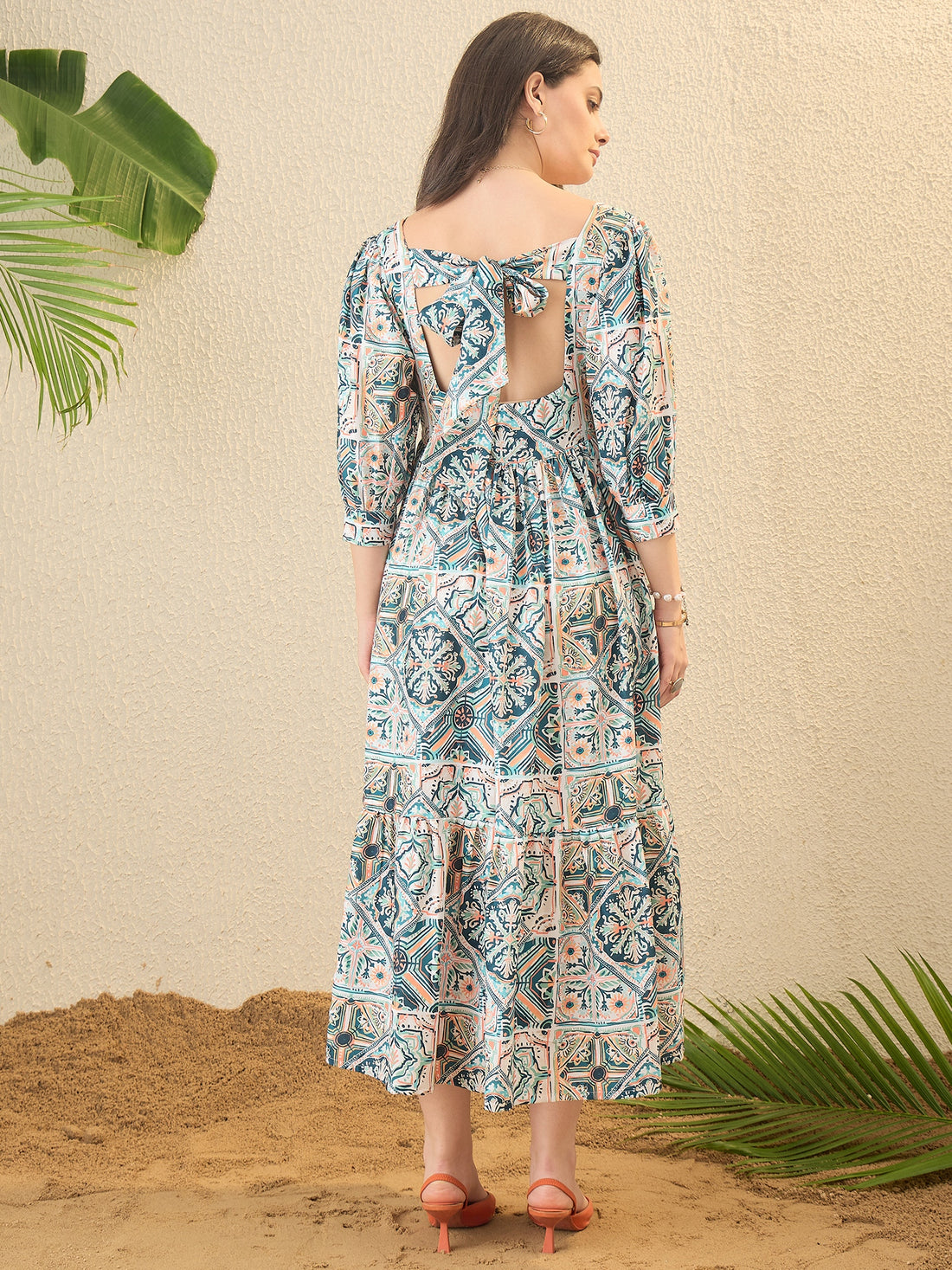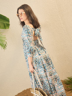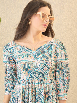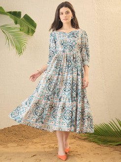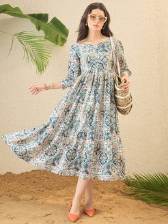 Multicoloured Geometric Printed Fit & Flared Midi Dress