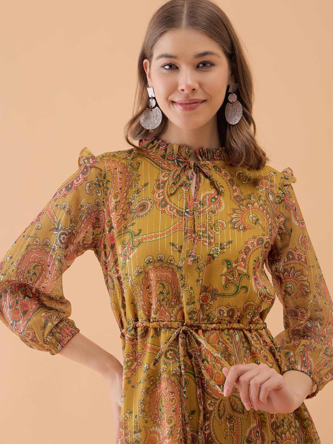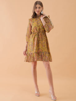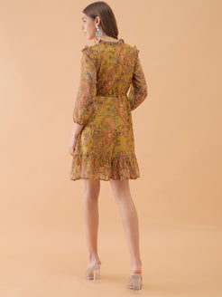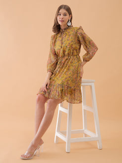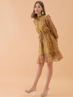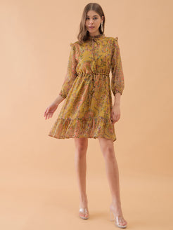 Musterd Yellow Floral Printed Flared Dress
