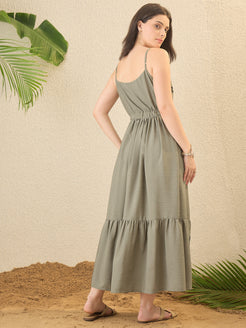 Olive Green Ethnic Motifs Embroidered A-line Dress