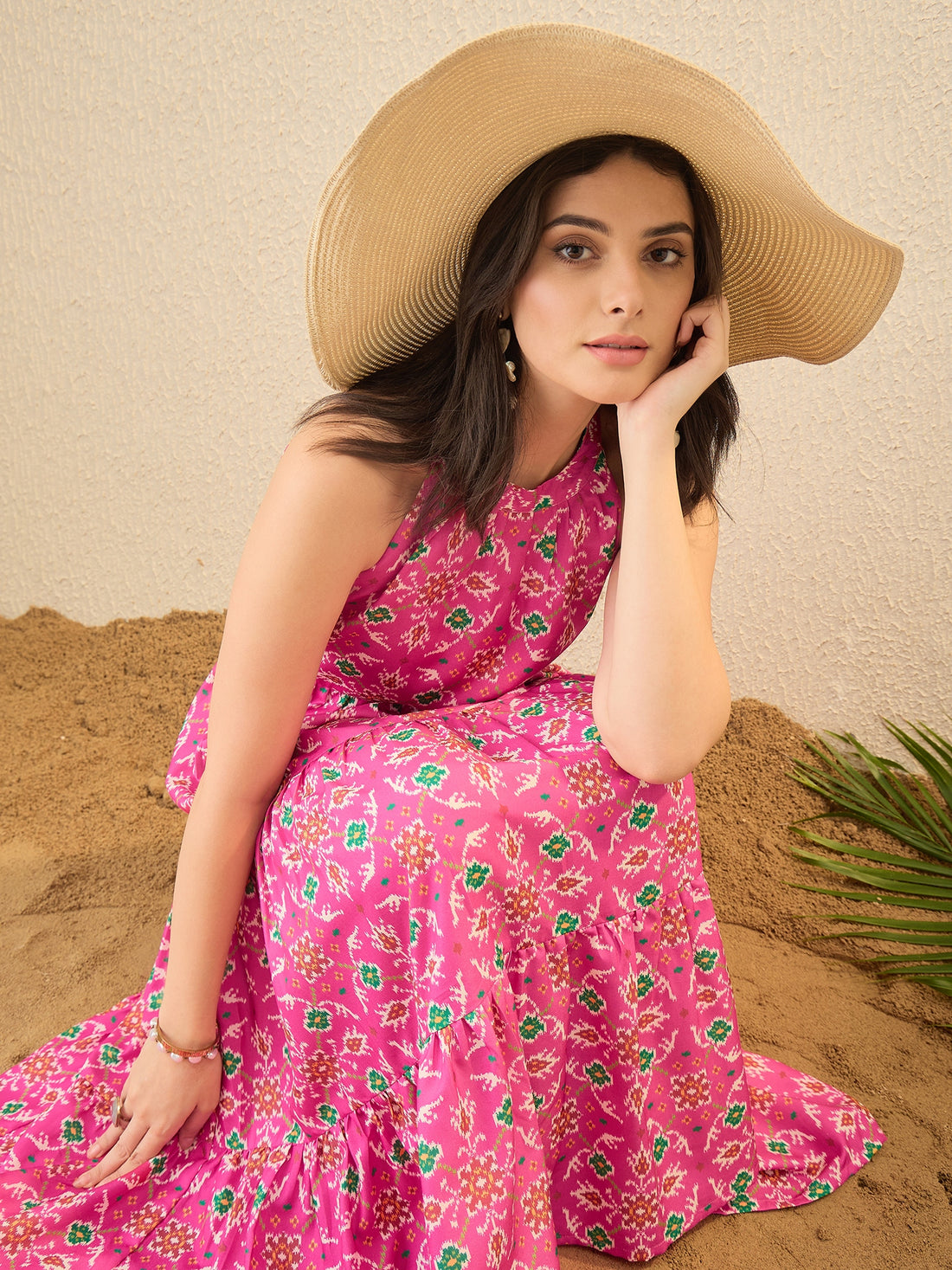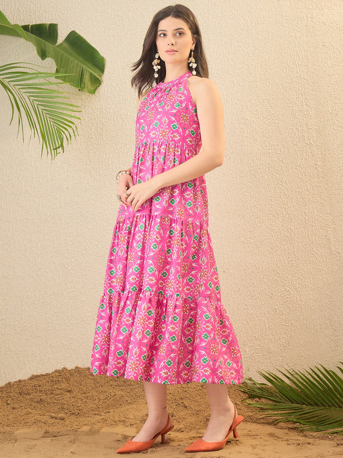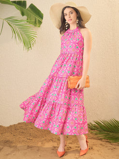 Pink Ethnic Motifs Printed Maxi Dress