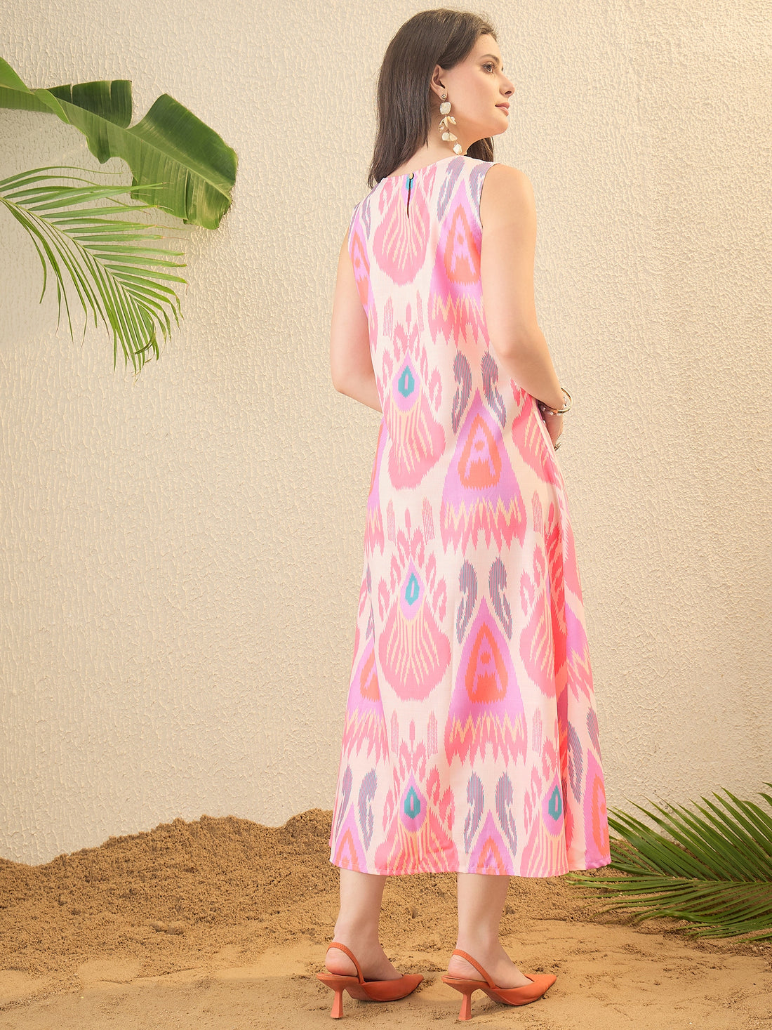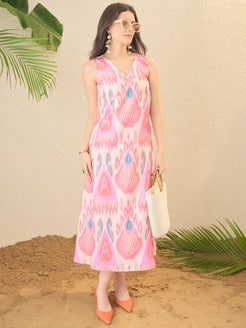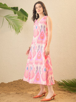 Pink Ikkat Printed A-line Dress