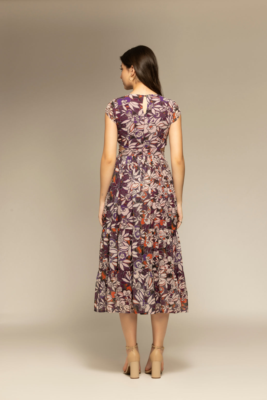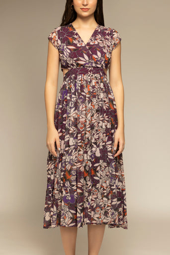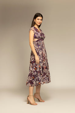 Purple Floral Printed Cut-Out Maxi Dress