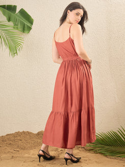 Rust and Black Floral Embroidered Fit and Flare Dress