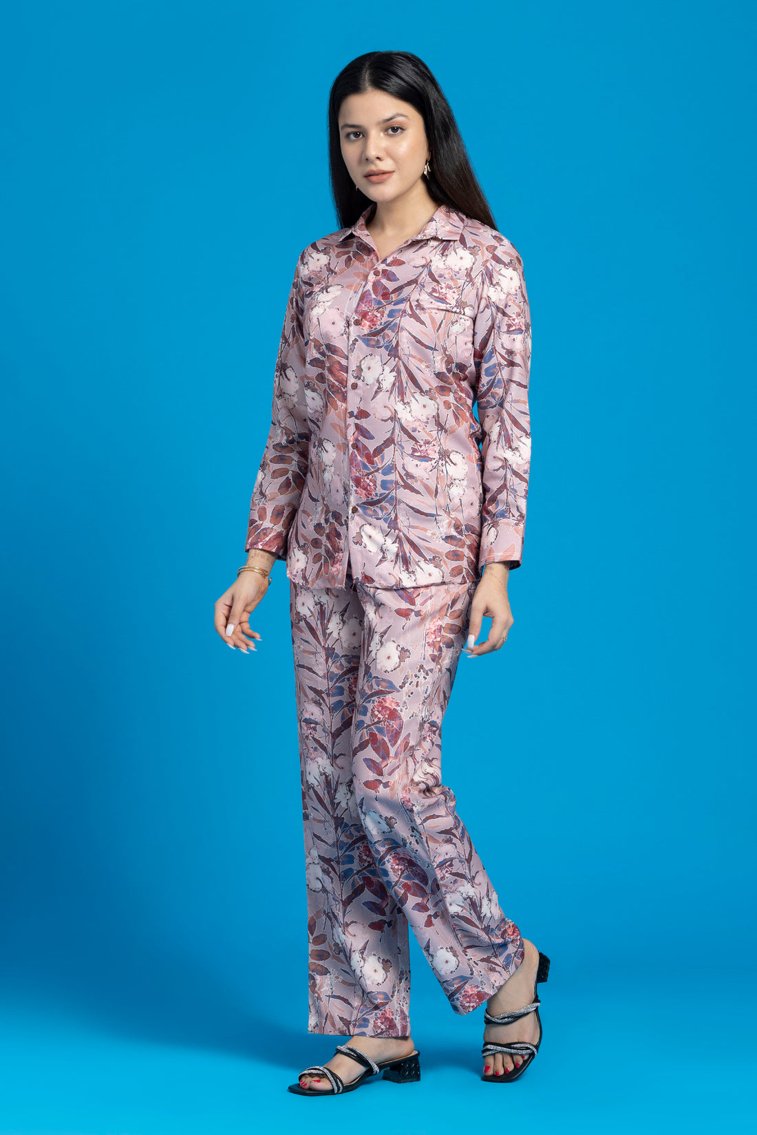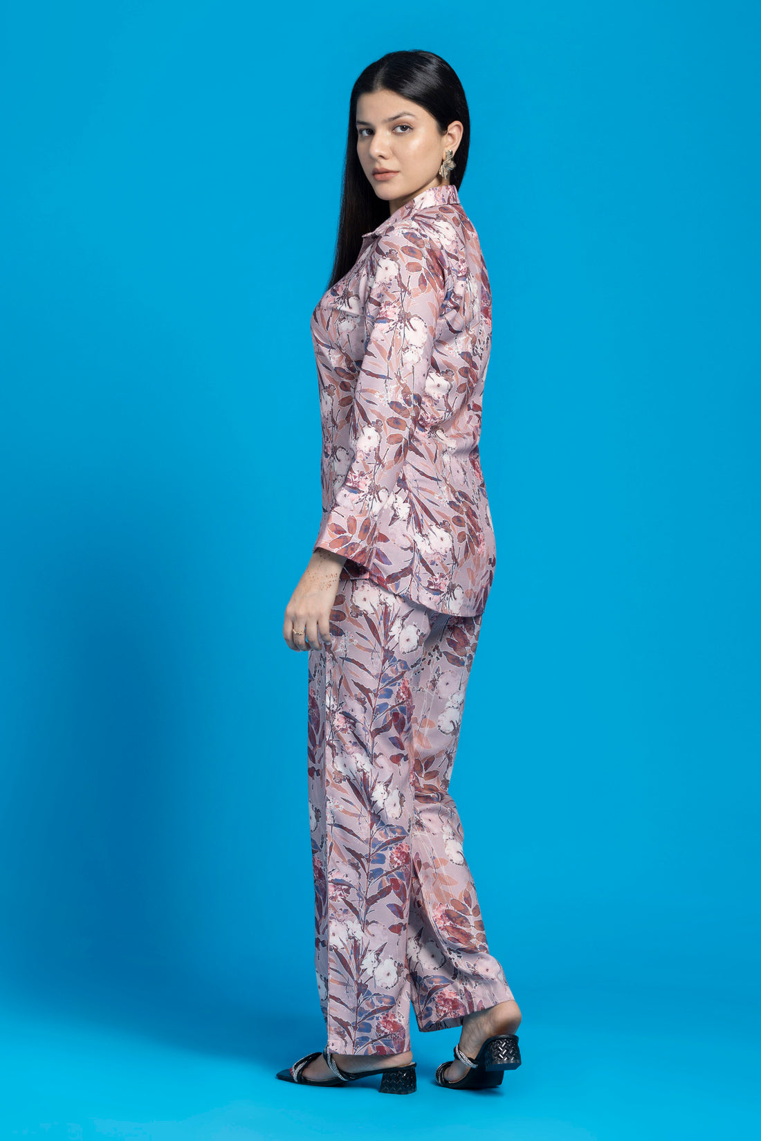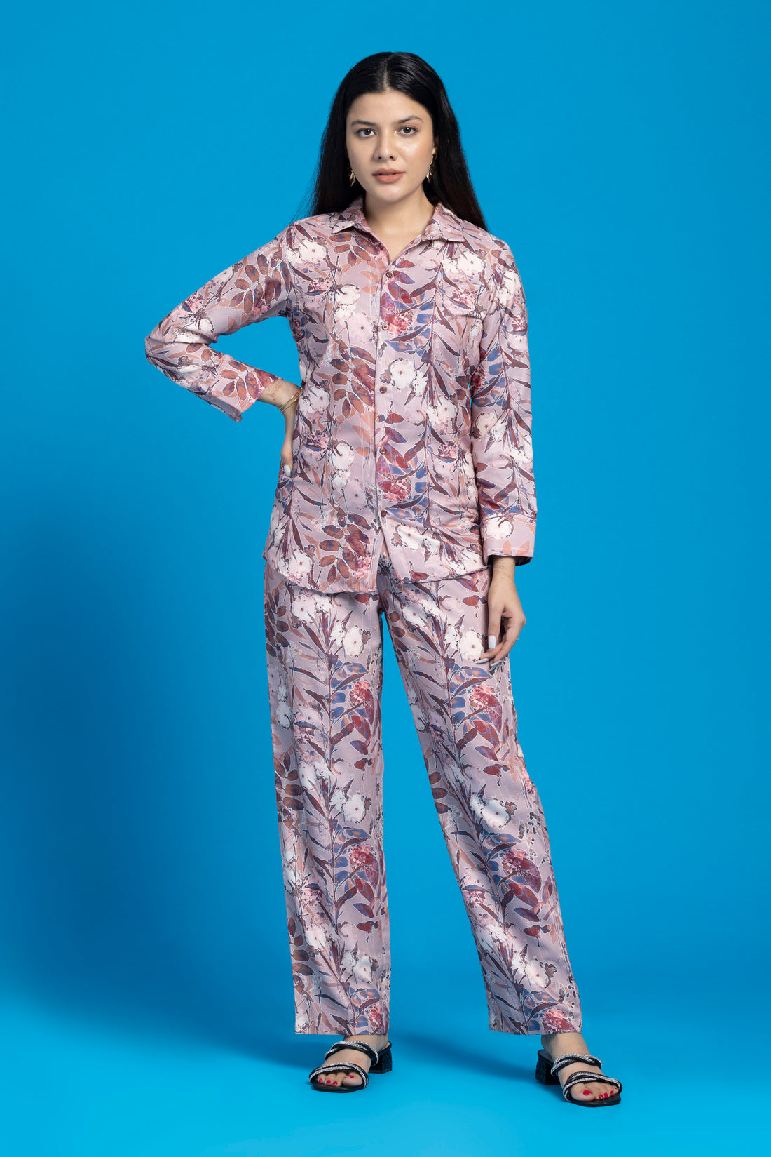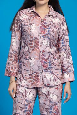 Rust Coffee Printed Shirt Style Co-Ords Set
