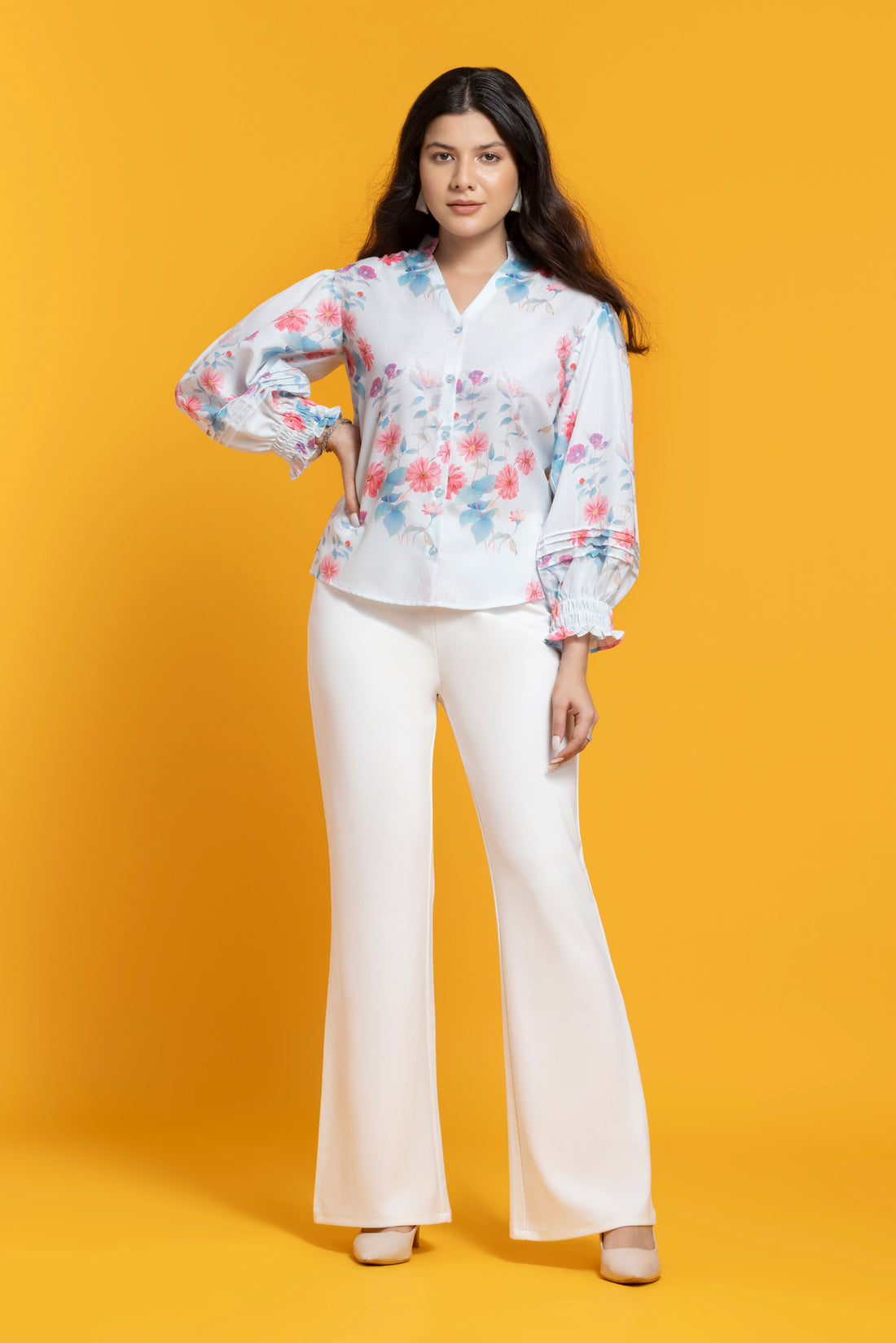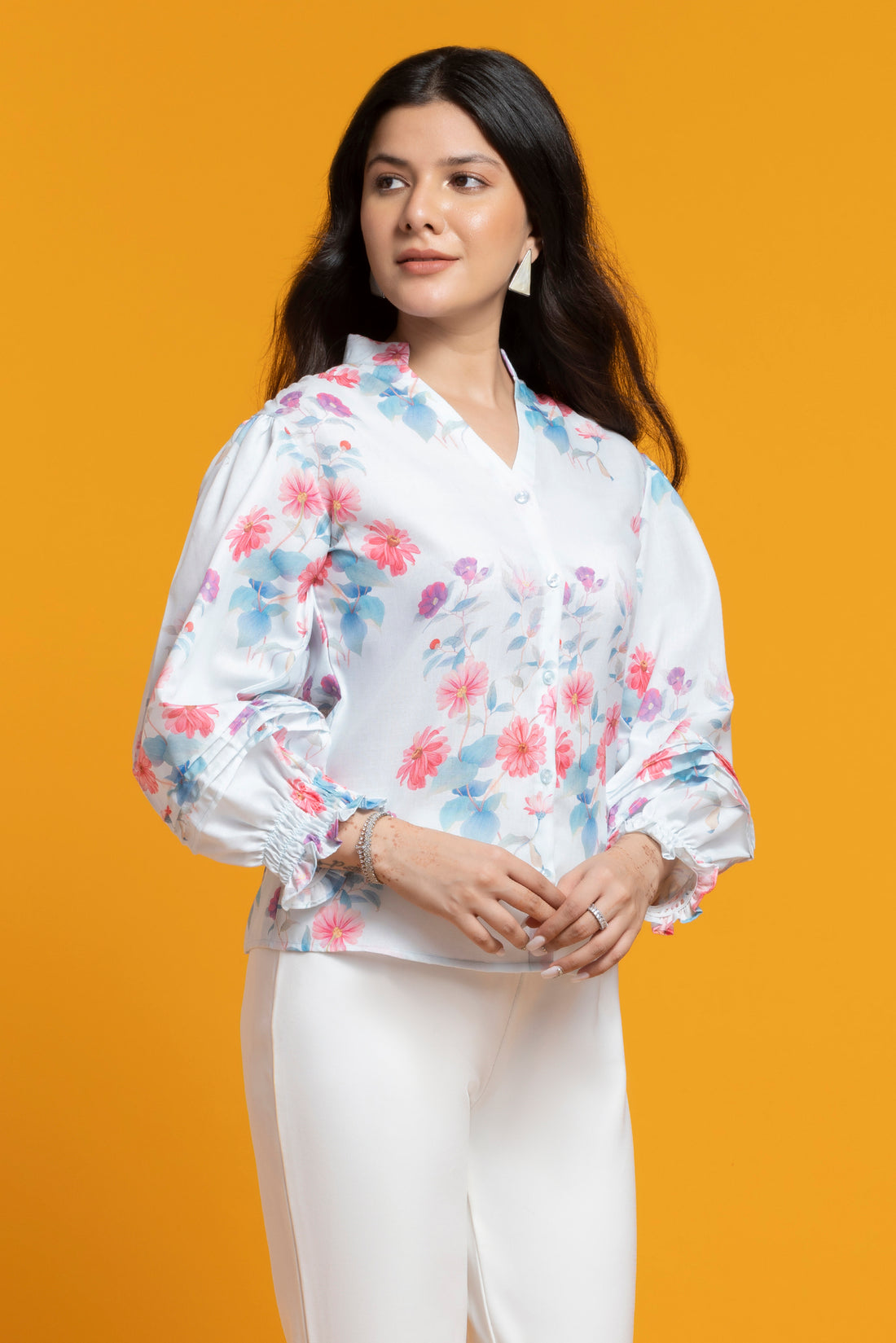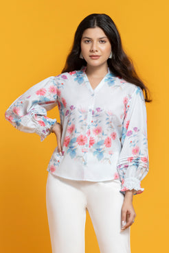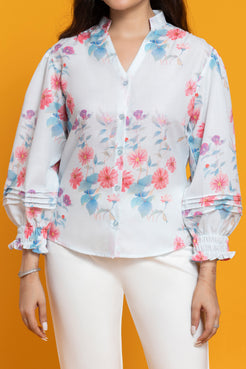 Sky Blue Floral Printed Shirt