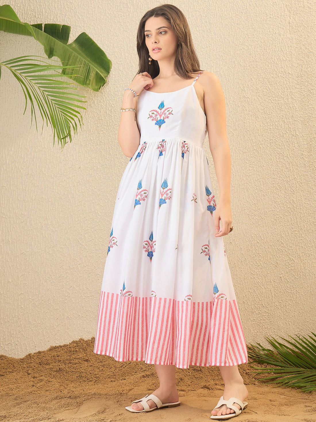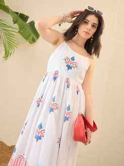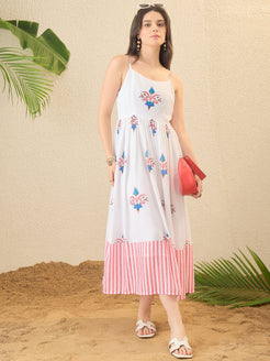 White Floral Print Fit & Flare Dress