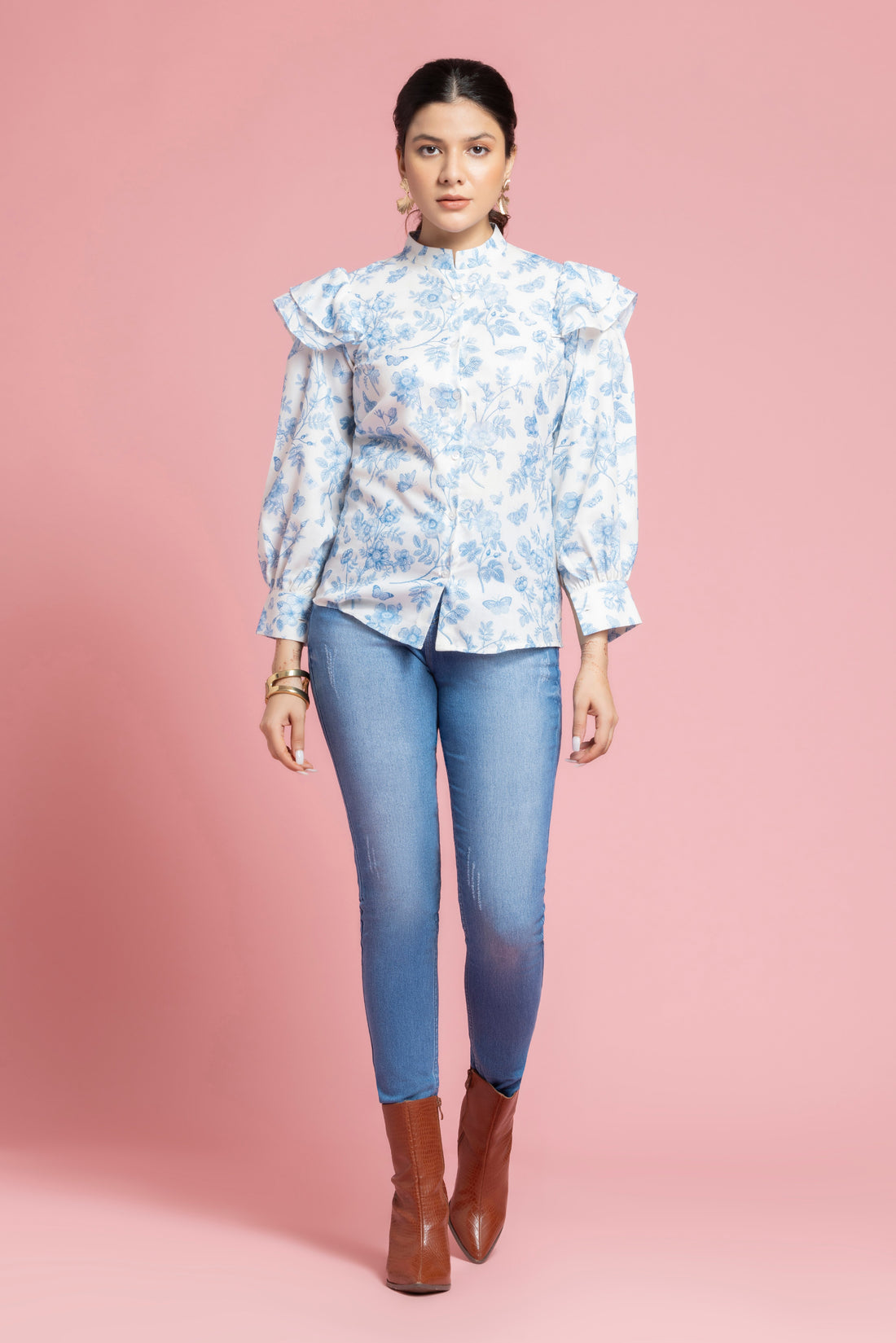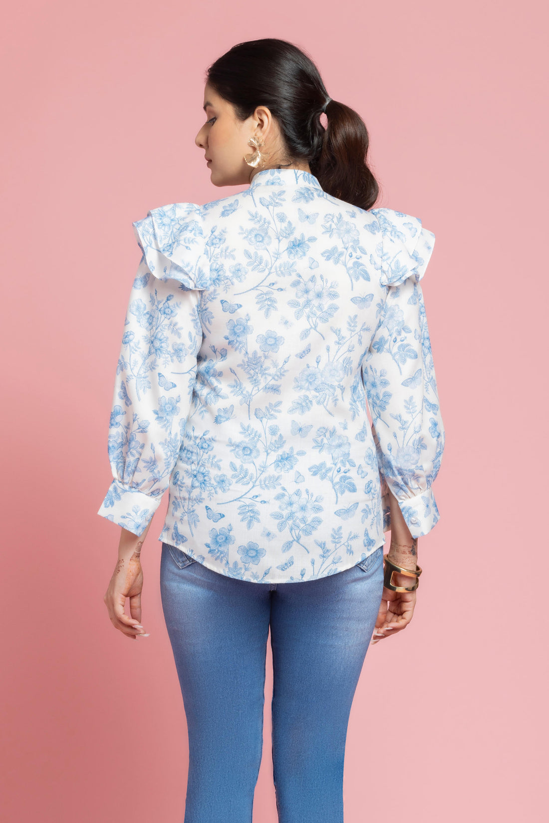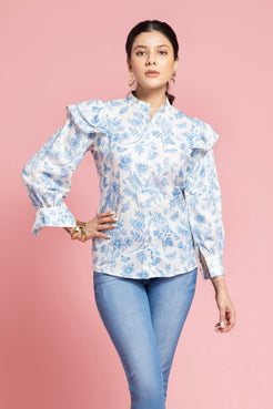 White Floral Printed Shirt